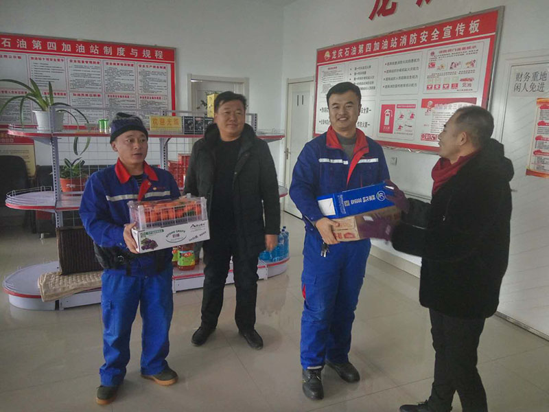 据悉,龙庆公司安全质检部总监吴学峰、集团督导专员杨宏刚、龙庆公司财务部总监张晓冬等人,在春节前和节日期间以多种方式对各加油站和油库进行了春节慰问。
