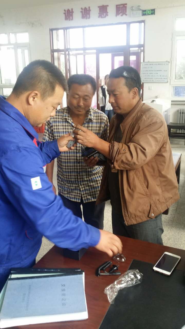 讷河分公司二站员工为得到加油奖励的顾客调试奖品